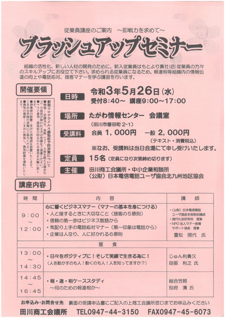 ホーム > セミナー・イベント > たがわ情報センター > ブラッシュアップセミナー(6/25に延期)