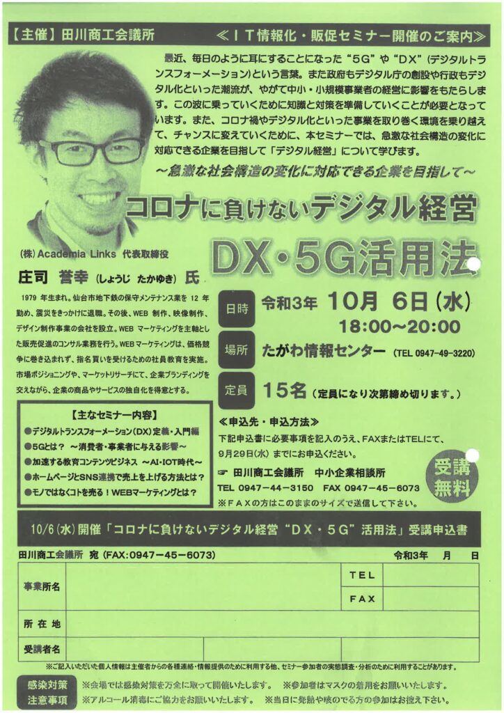 コロナに負けないデジタル経営 DX・5G活用法セミナーチラシダウンロード(PDF)